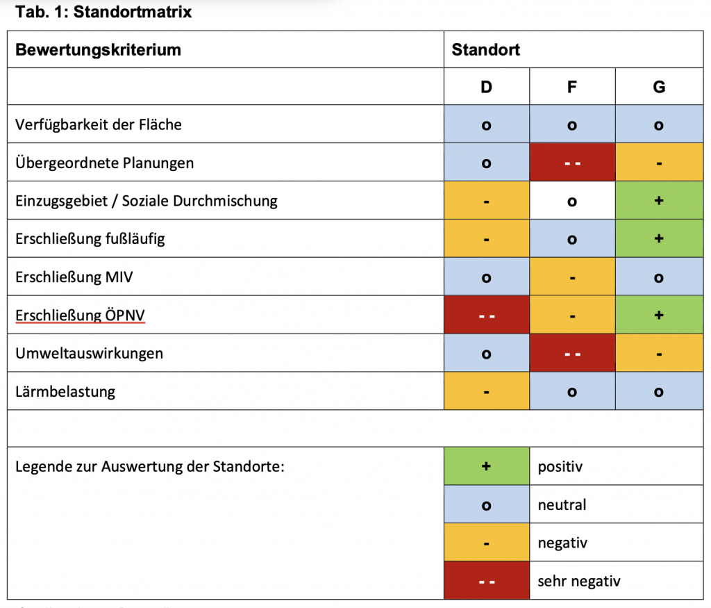 Liest man aber die Standortanalyse im Detail und setzt die dort getätigten Aussagen ins Verhältnis, könnte der Gedanke aufkommen, dass bereits vor der Analyse feststand, dass es Standort G werden soll.